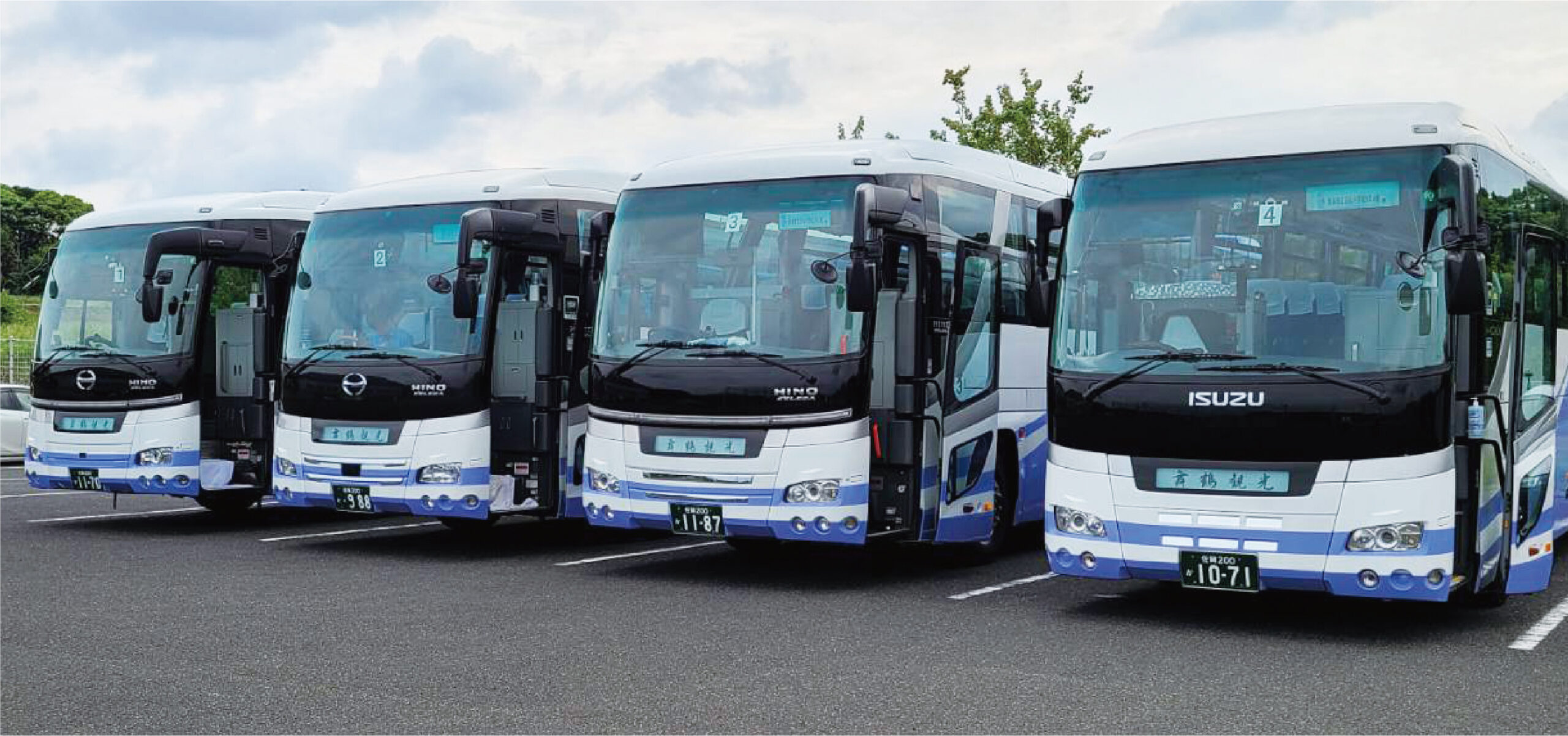 サロンとスケルトンタイプを保有しています。団体旅行や長距離移動に最適な大型バス。快適な車内空間と充実した設備で、長時間の移動も快適にお過ごしいただけます。